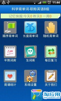 《科学背单词》采用单机数据库,单词完全根据职称英语B级考纲设置,亲,无需担心网络随时背单词