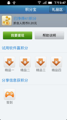 3. 积分快速提现功,可充值到手机或支付宝帐号;