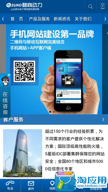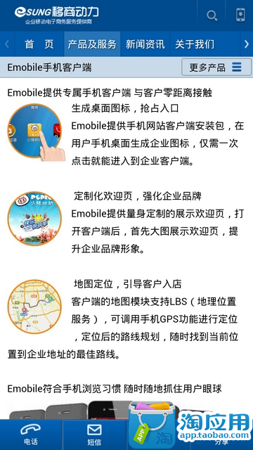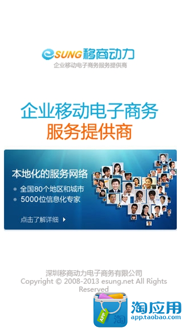 深圳移商动力电子商务有限公司(www.esung.net)是一家专注于移动互联网及电子商务领域的创新型高科技企业,致力于为中小企业提供基于移动互联网的电子商务全业务解决方案!企业移动客户端(APP)是为企业提供实现全网营销的利器。企业移动客户端能为企业提供商业供求信息和资源展示,帮助企业打造移动营销生态链,增加营销通道和机会;同时公司也为企业提供营销型、产品型、客服型等多种APP开发制作与营销型手机官网、手机网站制作开发,全网移动电商营销解决方案。