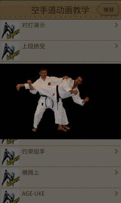 空手道中包含踢、打、摔、拿、投、锁、绞、逆技、点穴等多种技术,一些流派中还练习武器术。本应用采用动画教学,分别从左右前后上下立体展示空手道的一招一式,全部招式都是动态图,并提供横屏大图模式,让您全面掌握理解空手道的精华所在,是自学传授空手道格斗擒拿的最佳教程!