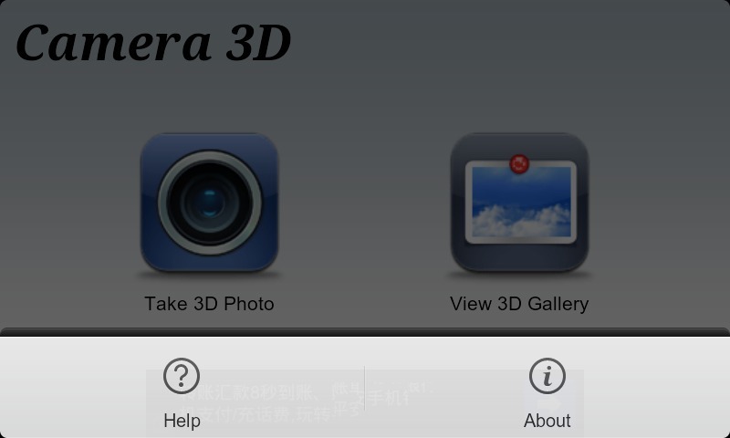 Camera3D (3D动态照相机)是一款超酷的拍摄动态照片的软件。单一模式,从不同角度拍摄一个物体,最后组合拼成的照片像魔术般的动了起来,很有意思,照腻了静态的朋友们可以尝试下。