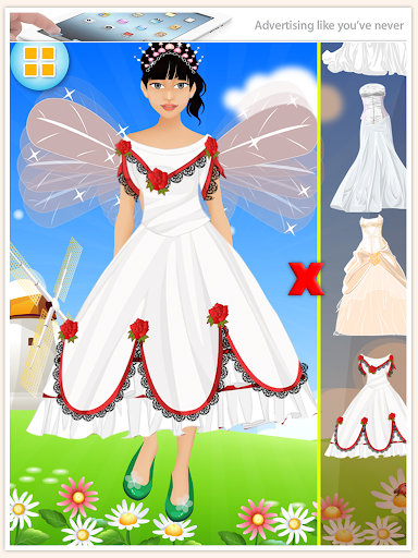 - 扮靓童话美丽的礼服,耳环,项链,凉鞋,翅膀,冠,头发用不同的颜色。