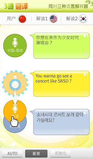 - 世界上第一個同聲翻譯功能在三個國家,外國人可以很容易地與對方在一個三路轉換器進行通信。