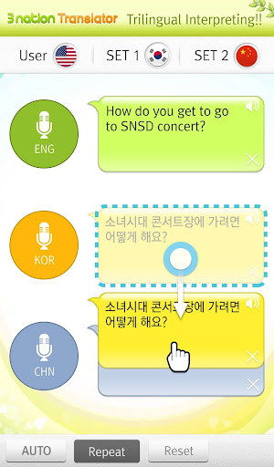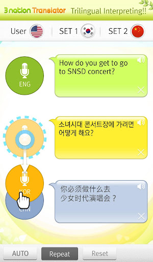 - 世界上第一個同聲翻譯功能在三個國家,外國人可以很容易地與對方在一個三路轉換器進行通信。