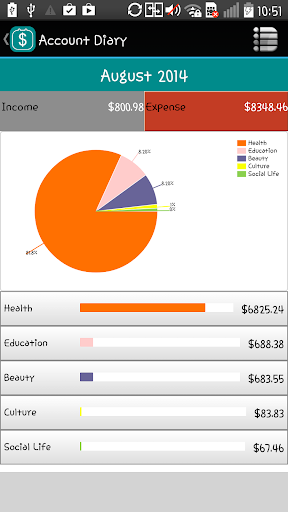 5,可以看到图中按类别每日,每月,每年的理解收入和支出