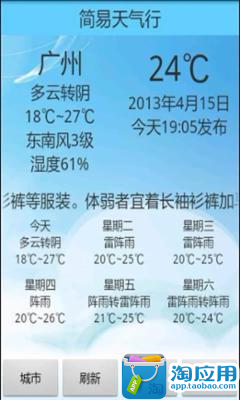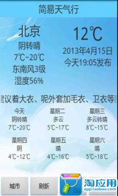 5、积体非常小,可查看六天天气预报,大家要求不要太高了.不要和那些几M的软件比了.