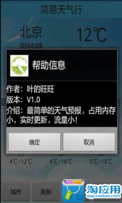 如果您只是需要一个看天气的软件,还希望占用最小的手机资源和流量,恭喜你找对了!简易天气行就是为您设计的。