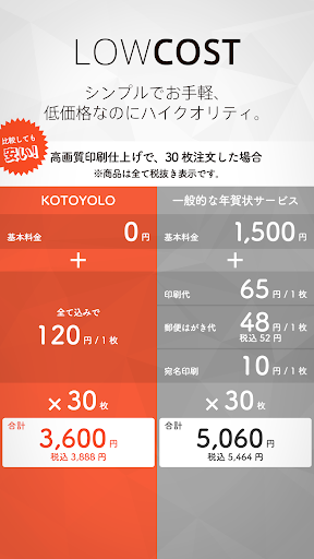 基本料など一切なし。印刷代、年賀はがき代、宛名印刷、投函代行全部込みの価格で