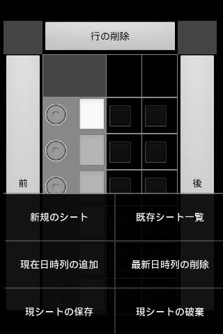 ・シート画面のラジオボタンを選択後、上部の「行の削除」ボタンをタッチすると選択行を削除できます