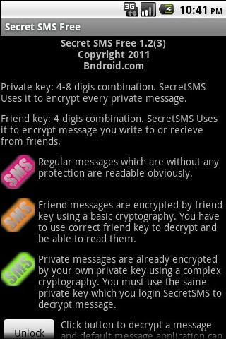 簡訊的秘密可以對Android手機的簡訊進行加密解密,也可以安全地傳送加密的簡訊給Android好友,他們可以使用簡訊的秘密使用相同的密碼作解密和閱讀。