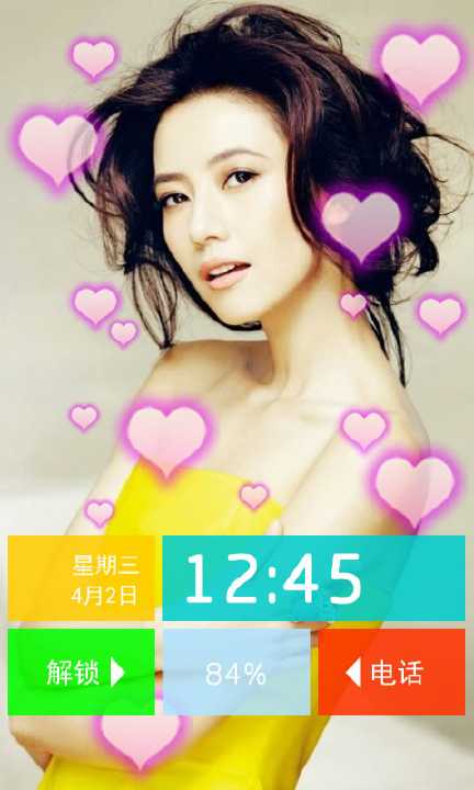 可自定义锁屏快捷应用入口,如电话,短信,相机等。