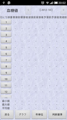 血糖和血壓,可查看每月每年列表的列表。由於是公知的狀態的顏色編碼的根據的準則。此外,你可以看到的變化,因為它可以很容易理解的圖形顯示,分別。