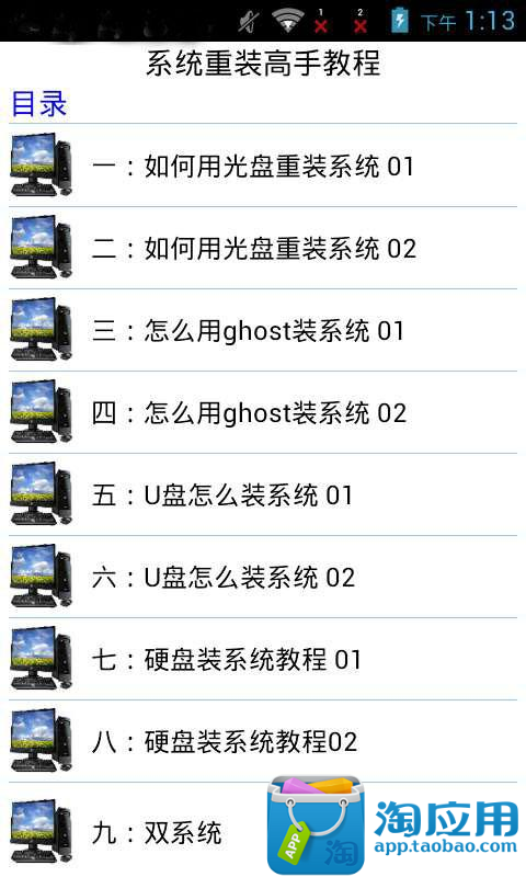 本应用时为广大电脑迷提供最新的电脑重装方法,提高电脑迷的动手能力。如果你还是一个电脑迷的话,这是一个款不可多得的软件,可以快读提高动手能力,还在等什么,赶紧拿起手机下载吧!!!