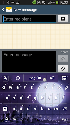 你是一个浪漫的人? 谁在凝视月亮和星星整夜? 如果答案是肯定的,试试这个神奇的紫月亮键盘主题为您的智能手机或平板电脑.