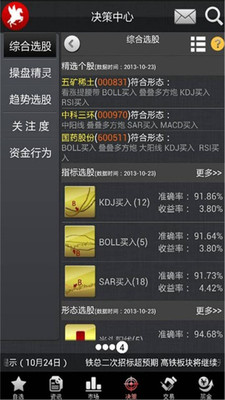 1.潜力金股实时捕捉、K线形态组合选股、特色指标分析;自选股个股走势缩略图展示,随时关注个股动态;