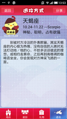 约会中搞定心仪的他(她),你是否在犹豫该怎样与自己深爱的他(她)一起度过这个轻松的周末?你是否在为约会的内容绞尽脑汁呢?你是否知道怎样才能营造出让十二星座他(她)心动的甜蜜约会呢?现在让「星座达人之2012约会达人」就来教你“对症下药”,为你们的爱情加油!