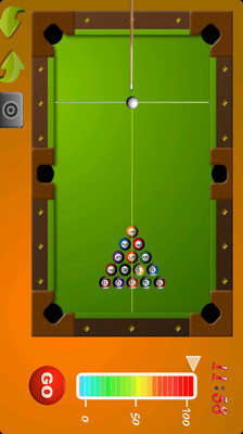 本游戏分为两个模式:时间模式和练习模式。时间模式要求玩家在规定的时间内把桌上的球全部打入网内,练习模式就没有具体要求了,可以不限时间畅玩!根据桌面的提示线,点击GO,就可以发射白球了,还可以设定力度呢!