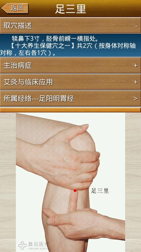 《嘉讯●经络穴位图解》为用户提供了快速查找经络、穴位的功能,400多个艾灸治病常用穴位能够快速找到。经络、穴位图文结合,用户能够方便地了解该经络、穴位的艾灸功效,以及如何快速取穴。同时,为用户提供了《十大养生保健穴》。所有功能,均免费提供。