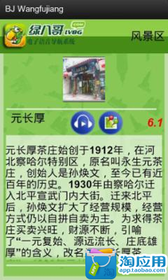 王府井大街,南起东长安街,北至中国美术馆,全长约三华里,是北京最有名的商业区。王府井的日用百货、五金电料、服装鞋帽、珠宝钻石、金银首饰等, 琳琅满目,商品进销量极大,是号称"日进斗金"的寸金之地。近日,绿八哥听游天下推出真人语音导航软件,带您去揭开百年老街王府井的前世今生,在繁华深处寻找散落的秘密花园。