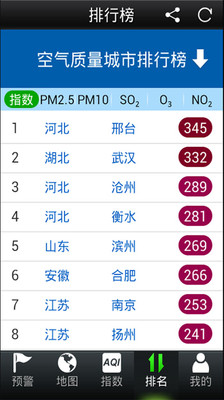4、全国200多个城市的雾霾排行
