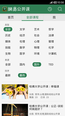网易公开课,是网易为爱学习的网友打造的'随时随地上名校公开课'的免费课程平台。它以哈佛、耶鲁、牛津、剑桥等'全球名校视频公开课'为内容资源,结合稳重的界面设计和人性化的操作,实现您与名校真正零距离接触,无成本、无障碍地了解世界前沿的新知、新思。视频播放速度流畅,视频画面高清。