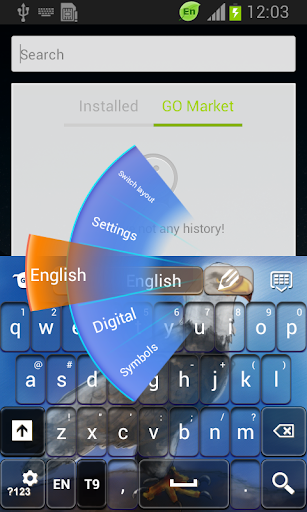 誰不希望生活在美國夢嗎?我們創新的設計師想出了這個全新的主題: AMERICAN EAGLE鍵盤!下載美國之鷹鍵盤現在就享受這grandious鷹圖形!