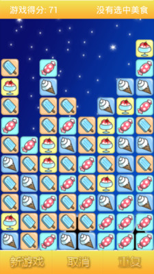 美食消消消,非常好玩,耐玩的游戏。一起来消除美食,挑战高分的快感吧。玩法:只有点击2个或者以上的美食消除,即可得分。同时消除的美食越多,得分越高。剩余的美食少的话,还有奖励哦。