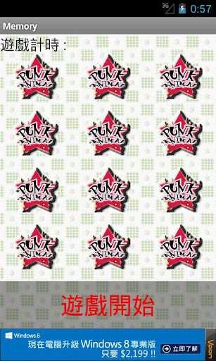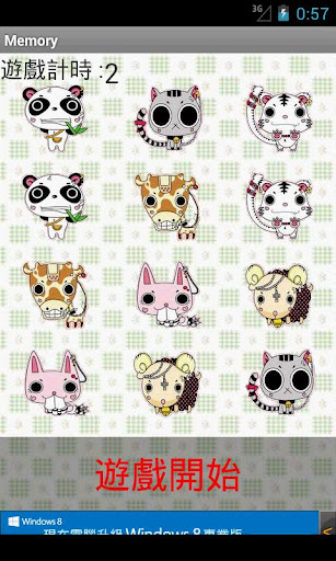 記憶遊戲:開始遊戲後翻牌,將倒數5秒後蓋牌,請運用你的記憶力,將2張相同牌翻出,配對成功便消失,全部配對完成後便記下遊戲時間,可以讓玩家日漸記憶力增強及專注力提高,大人小孩都可以玩!小孩可以啟發記憶能力及專注力,老人玩的話可以預防老人失憶!
