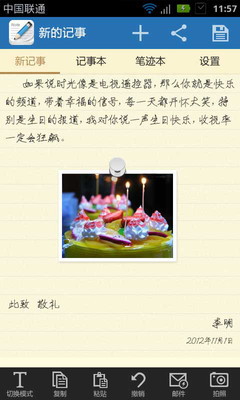 2)多种模式:提供文字、涂鸦、笔迹三种记事模式;