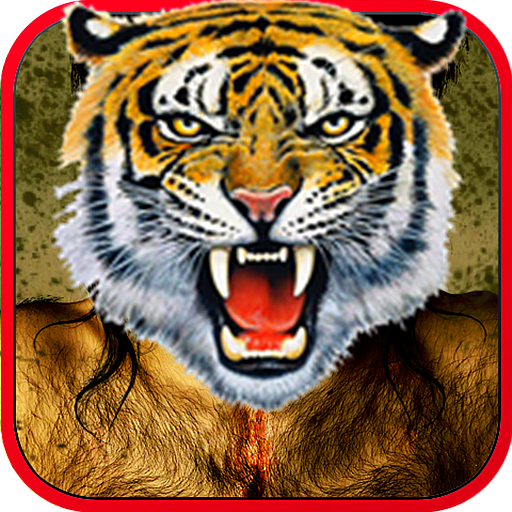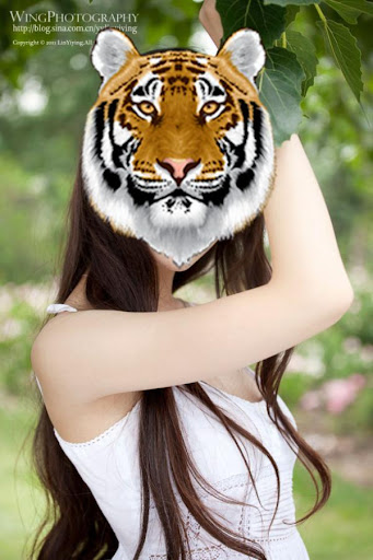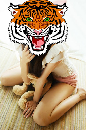 *滑稽老虎和其他動物蓋住你的臉在拍攝的照片。