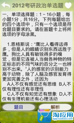 考研政治历年真题涵盖了1992-2013所有政治真题,包括题目、答案、解析。从实战要点分析出发,帮助同学们快速掌握重点,各门分项进行突破。