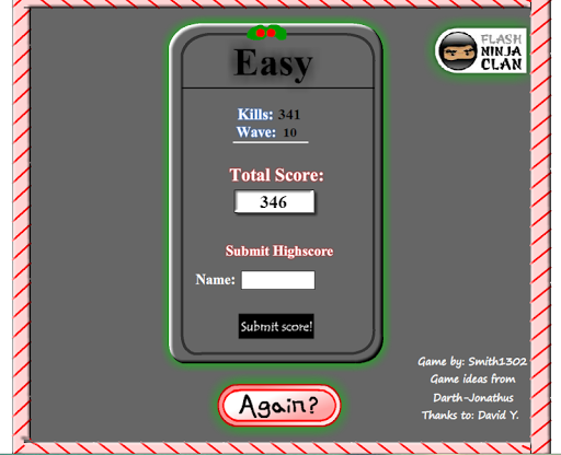 聖誕老人VS殭屍是一款關於聖誕的冒險類游戲。據說,每個人都知道聖誕老人和他的快樂聖誕女神,但沒有人知道他還有一個哥哥。他的哥哥總是嫉妒聖誕老人,並搬到了南極。許多年以後,嫉妒之的心越來越濃,他決定召喚他所有的精靈和邪惡的聖誕爪牙去襲擊聖誕老人的工作坊,從而永遠阻止聖誕節並毀壞聖誕老人的聲譽!入侵的精靈們會從屏幕的底部出來並試圖襲擊聖誕老人的工作室。你必須建立完美的軍隊去阻止他們。你需要的所有東西都可以在左側的菜單欄中買到,只要你有足夠的錢。現在,立刻去拯救聖誕節吧!