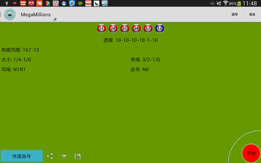 該應用程序顯示歷史數據列表,數字遺漏模式,以及數據偏差百分比圖;通過分析,支持4種選號策略,即是快速,模式,智能,專家。