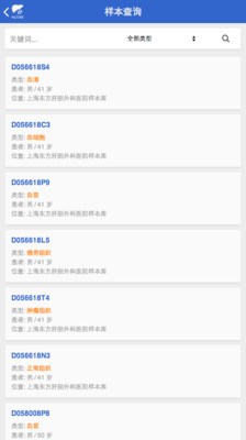 4. 样本查询: 可以通过相关查询选项进行搜索,这里只有用户注册登录之后才可看详细内容。