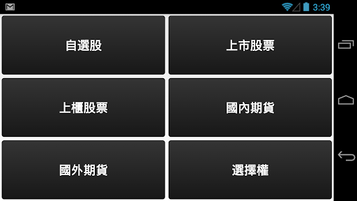 目前提供上市、上櫃、國內期貨、國外期貨 四種商品