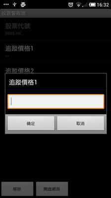 -股票开盘前开啟”股票警报器(Stock Alarm)”, 并设定股票代号与追踪价格(最多可设5个)