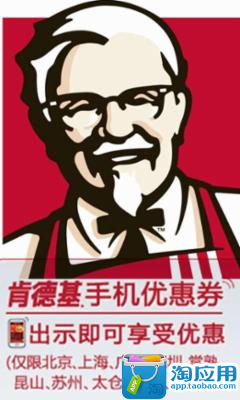 肯德基优惠券-免打印版,将手机优惠券保存到手机,在KFC餐厅点餐前出示,即可轻松享受优惠!
