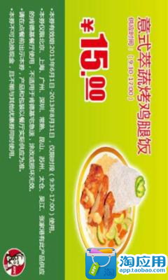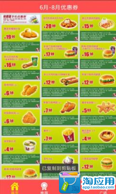 方便快捷的一款肯德基优惠,支持自动更新,有了这款东西,以后不用带优惠券啦,最重要的是,省钱!肯德基的利器哦!点击你想要的套餐,向柜台展示即可。