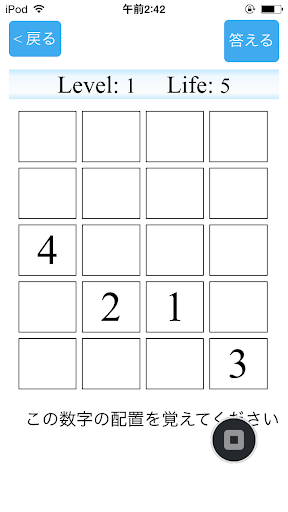 マス目にランダムに表示される数字の位置を覚えて、脳と目力を鍛えるゲームです。