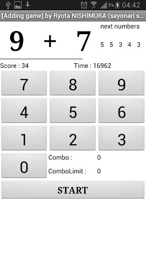 ・上に表示された足し算をして,答えの下一桁の数字を押す