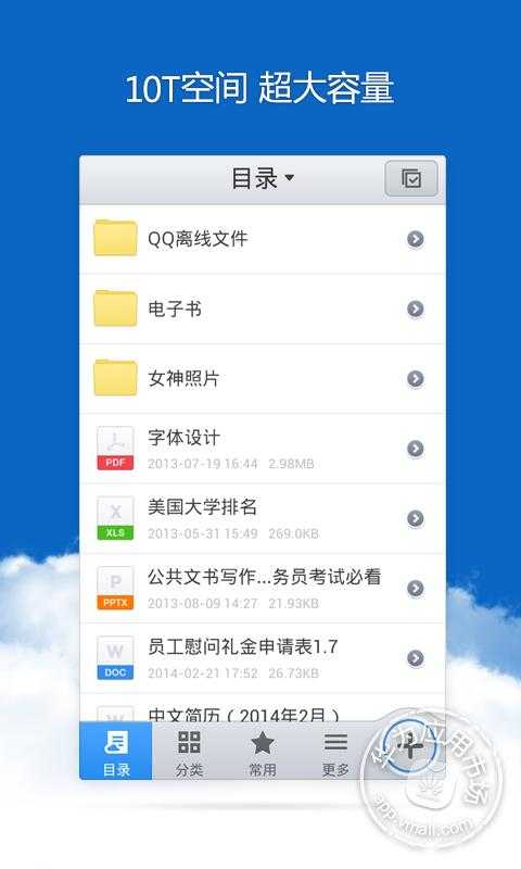 超过3亿人使用,全球最多用户的云存储服务!10T免费容量,可以保存5000万张高清照片,数万部高清视频!史上最强大的网盘,独家提供保存各类文件、笔记、网页、甚至是QQ离线文件的能力。