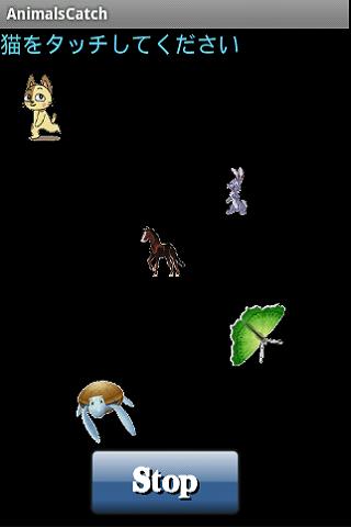 上に動物の名前を表示します。その動物をタッチするゲームです。