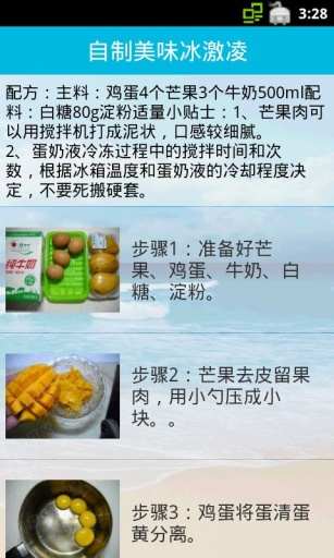 炎炎夏日,自己制作一次冰冰凉凉的冰激凌,品味一下舌尖上的冰爽,应用包含了几十种冰激凌的制作方法,每个都有详细步骤图片及说明。