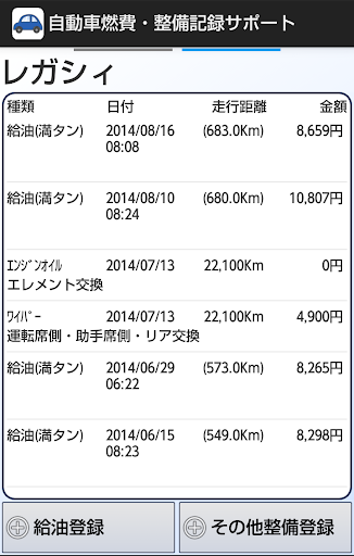 ・整備および給油履歴一覧画面のリストをタップすると、詳細表示画面に遷移するようにしました。