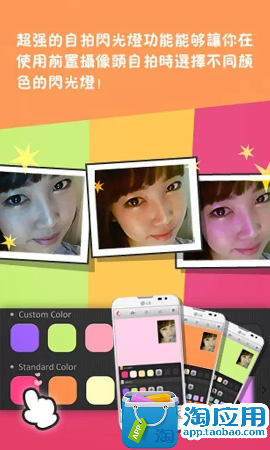 *此版本是测试版本,可能会出现错误,敬请谅解* 《自拍神器》是一款风靡韩国的人气手机自拍应用,拥有着让韩国美女们爱不释手的强大自拍功能。超强的自拍闪光灯功能不仅能够让你在使用前置摄像头自拍时选择不同颜色的闪光灯,而且能够通过设置闪光灯的亮度来调节面部光泽的明暗,来达到更加自然美丽的拍摄效果。不仅如此,《自拍神器》区别于其他一般的照片编辑应用的最大特点是单纯的通过后期机械式的修改而无法达到的自然效果通过《自拍神器》可以让您的照片实现最佳自然,真实的美容效果。除此之外,《自拍神器》还拥有着各种超强的编辑功能,多种特效和各式各样的贴纸,以及自动左右旋转,无声拍摄和定时拍摄功能等高端拍摄功能一个都不少,还有一键式平台分享,可以让您轻松的把照片分享到sns上,为您留住生活中各种美好的瞬间回忆。 ★超强的自拍闪光灯功能能够让你在使用前置摄像头自拍时选择不同颜色的闪光灯! ★使用前置摄像头的同时能够让您随时随地的享受自拍闪光灯功能! ★具备让用户更加方便使用的功能! ★还包括了无声拍摄,自动转换方向,声量按钮拍摄的多种功能 ★拥有着强大的后期编辑功能,各种效果,贴纸功能!