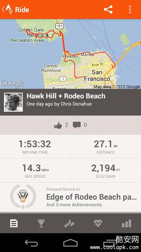 使用Strava Cycling,可以通过手机上的GPS记录你的行车路径。同时也可以获取详细的运动信息,包括距离,速度,海拔和身体消耗热量的统计,当然你也可以上传线路与朋友分享或者虚拟竞赛。