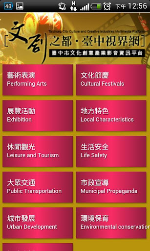「文創之都‧台中視界網 APP」是由台中市政府所發行,內容是取自「文創之都‧台中視界網」(http://vod.taichung.gov.tw/)影音平台單元之資料。 「文創之都‧台中視界網」自100年建置完成迄今,係本府為便捷傳達「藝術表演、文化節慶、展覽活動、地方特色、休閒觀光、生活安全、大眾交通、市政宣導、城市發展、環境保育、影視推廣」等主題內容,所創建之網路影音發布與管理平台。目前所發佈之影音不僅提供市民更豐富、更實用的資訊與服務,亦提升市府既有影音內容的使用率,令「文創之都‧台中視界網」成為台中市主要的多媒體宣傳與影音應用的管道。
