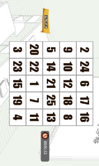 舒尔特方格 (Schulte Grid) 是在一张方形卡片上画上 1cm × 1cm 的 25 个方格,格子内任意填写上阿拉伯数字 1 ~ 25 等共 25 个数字。训练时,要求被测者用手指按 1 ~ 25 的顺序依次指出其位置,同时诵读出声,施测者一旁记录所用时间。数完 25 个数字所用时间越短,注意力水平越高。