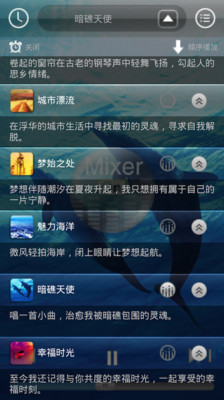 最新版的舒眠音乐治疗师提供了一系列的自然声供您选择,创造属于自己的神奇海洋画面,让您感受到海浪雨滴环绕自己的舒心和愉悦。您可以随心所欲选择一个或多个混合音搭配上自己心仪的钢琴曲目,也可以自由调节主音量大小。