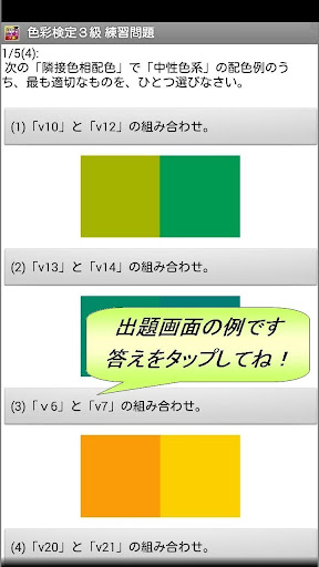 色彩検定試験に向け、ちょっとした空き時間にクイズ形式で取り組める練習問題をアプリ化しました。